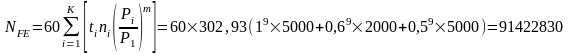 NFE – еквівалентне число циклів змін напруги. Розраховується з врахуванням даних режиму навантаження. Для шестерні: