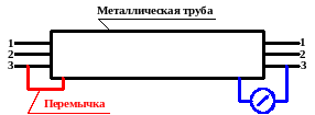 Рисунок 6. Схема прозвонки проводов, проложенных в металлической трубе.