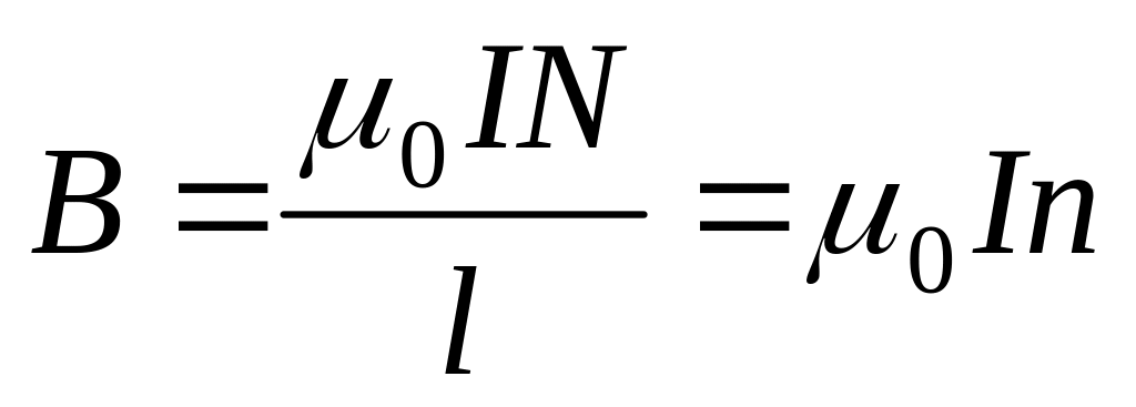 Здесь n=N/l – число витков на единицу длины соленоида. Соленоид – источник однородного магнитного поля, полностью заключенного внутри его объема. Разумеется, на практике не бывает бесконечно длинных соленоидов. Ток, текущий по реальному соленоиду, создает магнитное поле как внутри, так и снаружи его. Формула (7.3.4) тем точнее оценивает магнитную индукцию в центральной части реального соленоида, чем меньше отношение диаметра витка к длине соленоида19.