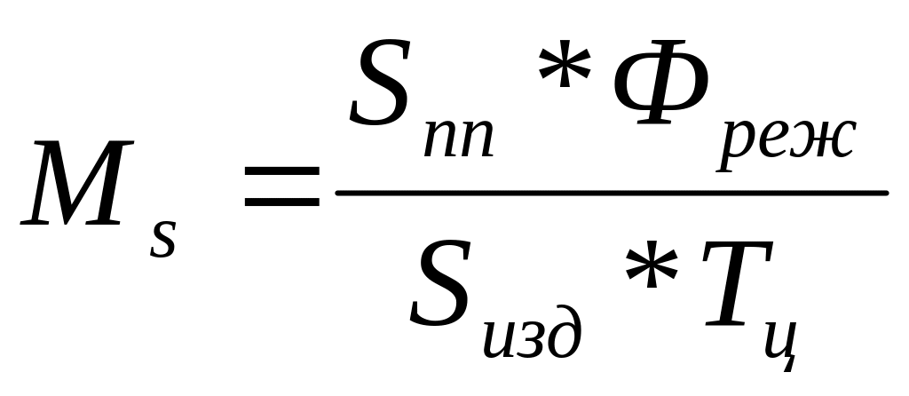 Производственная мощность сферы обслуживания, сборочных, литейных производств рассчитывается не по оборудованию, а по площадям. Расчет производственной мощности по площадям производится по следующей формуле: