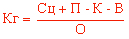 де: Кг - кількість грошей, що необхідна для обігу; Сц - сума цін усіх товарів, що реалізовані в суспільстві протягом року; П - платежі по кредитах минулих років; К - сума цін товарів, що продана в кредит цього року; В - взаємопогашені платежі (бартер, безготівкові розрахунки тощо); О - швидкість обороту грошової одиниці за рік.