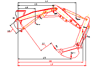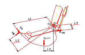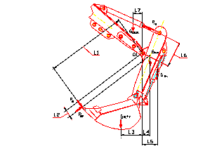 L1,L2,L3,L4 – плечи действия соответствующих сил относительно шарнира крепления ковша к рукояти.