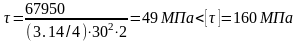 Следовательно, условие прочности по напряжением среза выполняется.