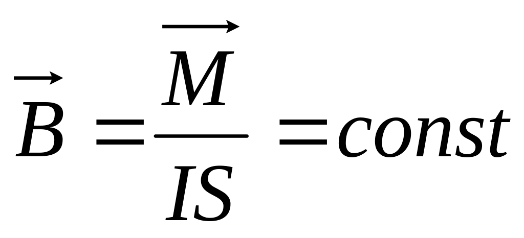 В результаті великої кількості дослідів змінюючи силу струму І площу S також змінювався обертовий момент, який виникав в результаті взаємодії магнітного поля рамки з зовнішнім магнітним полем але співвідношення залишалося величиною сталою. Це співвідношення називається вектором магнітної індукції.