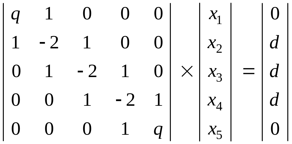 Составить программу решения СЛАУ порядка n и решить систему линейных уравнений пятого порядка с трехдиагональной симметричной матрицей вида