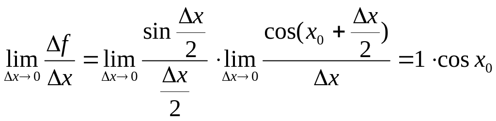 ∆f=sin(х0+∆х)-sin(х0)=2sin(∆х/2)·cos(х0+∆х/2).