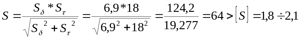 коэффициентов запаса прочности S для