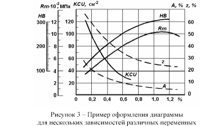 Рисунок 4.3 - Пример оформления диаграммы для нескольких зависимостей различных переменных