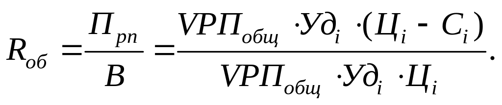 Прибыль от реализации продукции в целом и по предприятию зависит от четырех факторов первого уровня соподчиненности: объема реализации продукции (VРП), ее структуры (Удi), себестоимости (Сi) и уровня среднереализационных цен (Цi):