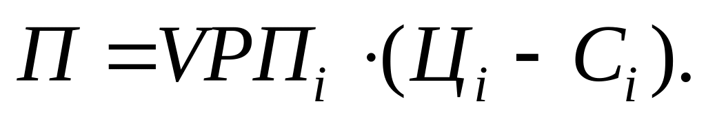 Выполнение плана и динамика прибыли от реализации отдельных видов продукции зависят от трех факторов первого порядка: объема реализации продукции (VРПi), себестоимости (Сi) и уровня среднереализационных цен (Цi):