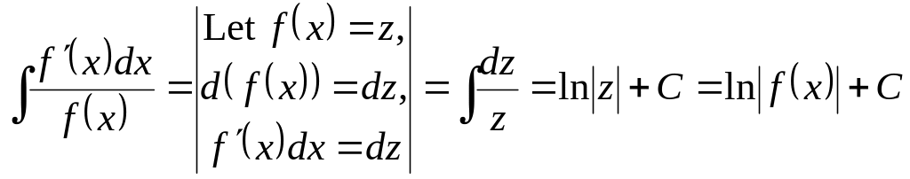 Ex. 14. The case when an integrand is a fraction, the numerator of which is the derivative of the denominator. The integral is reduced to a tabular one