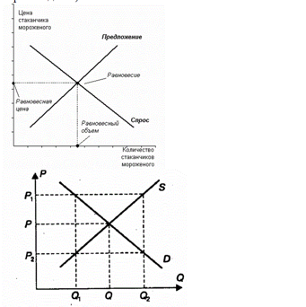 Р— равновесная цена; Q — равновесный объем продаж Равновесие означает, что все покупатели, которые могут и хотят приобрести данный товар по цене Р, приобретут его, а все продавцы, которые желают и готовы продать товар по цене Р, продадут его. При этом на рынке не будет ни дефицита, ни излишков данного товара