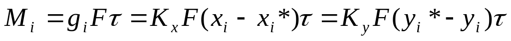 Сложность анализа процессов массопередачи, протекающих в колонных аппаратах, состоит в том, что в большинстве случаев точно не известны ни величина поверхности контакта фаз, ни значения xi* и уi*. Поэтому в качестве движущей силы процесса массопередачи принимают разность между концентрацией распределяемого компонента i в отдающей фазе xi, и его концентрацией xi*, соответствующей состоянию равновесия в принимающей фазе, в которой концентрация компонента i равна уi. Аналогично можно определить движущую силу процесса массопередачи через разность концентраций, отнесенную к принимающей фазе: уi* - yi, где уi* - концентрация компонента i в принимающей фазе при достижении состояния равновесия ее с отдающей фазой состава xi. В соответствии с этим количество вещества Mi, переходящее из одной фазы в другую через поверхность контакта фаз F, за время составит