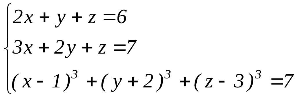 Решить систему нелинейных уравнений блочным методом. Начальные значения корней принять равными 1.