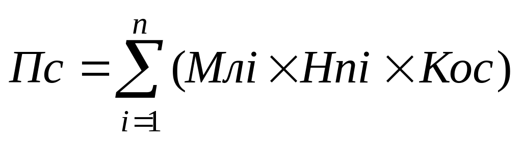 де Млі обсяг скиду і-тої забруднюючої речовини в тоннах (т); Нпі ставки податку в поточному році за тонну і-того виду забруднюючої речовини у гривнях з копійками; Кос коефіцієнт, що дорівнює 1,5 і застосовується у разі скидання забруднюючих речовин у ставки і озера (в іншому випадку коефіцієнт дорівнює 1).