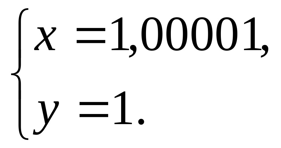 Аспект 5. С проблемой влияния ошибок округления непосредственно связана проблема так называемой обусловленности системы уравнений, из которой определяются интересующие нас величины. Если система уравнений плохо обусловлена (det → 0), то малое изменение исходных данных (округление) может привести к значительному изменению в решении, даже если бы решение находилось с абсолютной точностью (аналитически). Рассмотрим пример плохо обусловленной системы.