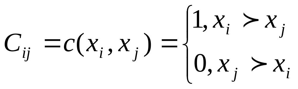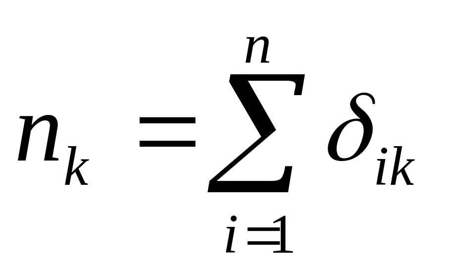При обработке экспериментальных данных, измеренных в номинальной шкале, можно лишь проводить операции проверки их принадлежности определенным классам. Результаты сравнения представим при помощи символа Кронекера: