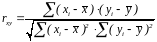 Коэффициент корреляции — параметр, который характеризует степень линейной взаимосвязи между двумя выборками, рассчитывается по формуле: