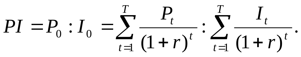 NPV – это разность между дисконтированными прибылью и инвестициями. Иногда эффективность проектов оценивается не разностью доходов и расходов, а их отношением. Обозначим PI – индекс рентабельности инвестиционного проекта.