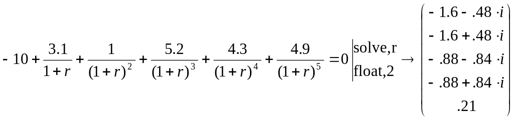 Если записать выражение NPV=0 в явном виде, получается уравнение, где неизвестной величиной является r: