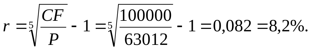 Облигация с нулевым купоном нарицательной стоимостью 100 тыс. рублей и сроком погашения через 5 лет продаётся за 63012 рублей. Проанализировать целесообразность приобретения этих облигаций, если имеется возможность альтернативного инвестирования с нормой прибыли 12%.