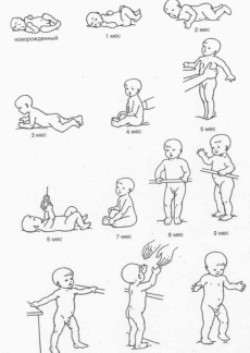 Центральная нервная система ребёнка развивается в процессе взаимодействия организма с внешней средой. С возрастом совершенствуется условно-рефлекторная деятельность. На каждом возрастном этапе центральная нервная система реагирует на внешние воздействия по-новому. Это принципиально изменяет поведение ребёнка и ставит его каждый раз на более высокую ступень. У здорового и во всех отношениях полноценного ребёнка - эйтрофика, правильному физическому развитию должно соответствовать развитие моторики и психики (рис. 2-6).