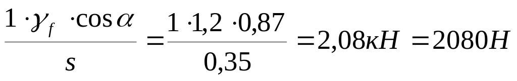 g = g0 · соs α = 242 ·0,35·0,87=105 Н/м; при s=0.5м>0.15м