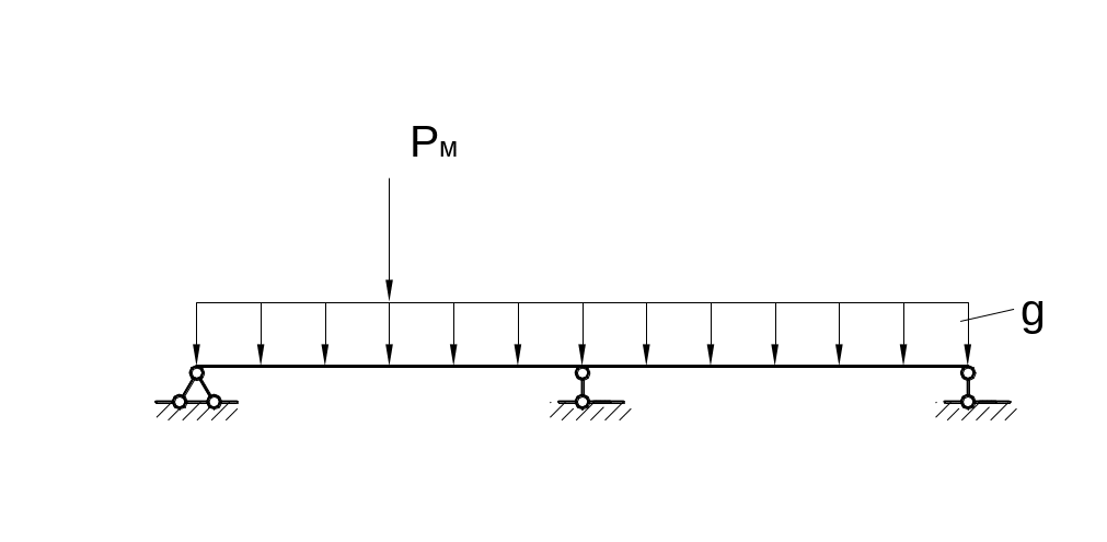 Для 1го расчетного сочетания (постоянная + временная снеговая нагрузка) расчетная схема см рис 2.2: