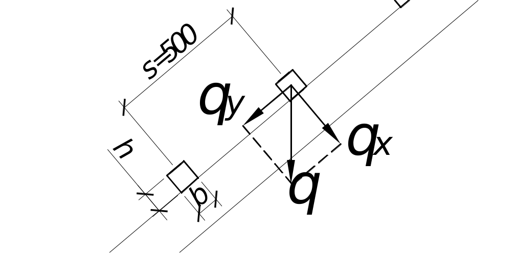 q= (g + pсн · соs α)·s·сosα = (242+1382·0,87)·0,35·0,87=628Н/м;