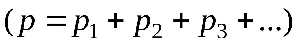 Закон парциальных давлений: общее давление смеси газов, химически не взаимодействующих один с другим, равно сумме парциальных давлений газов, составляющих смесь: