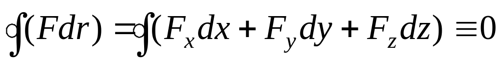 Силы потенциальные – если работа действующих на материальную точку (тело) сил зависит только от начального и конечного положения точки (тела) в пространстве (работа действующей на точку потенциальной силы вдоль произвольной замкнутой траектории точки тождественно равна нулю: