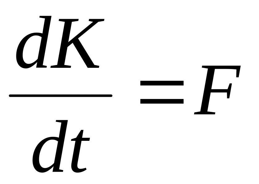 Первая производная по времени от импульса (количества движения) материальной точки равна действующей на нее силе: