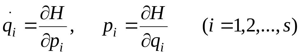 Канонические уравнения движения Гамильтона (для системы с s степенями свободы):