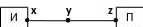 И-источник воздействия, П- приемник, <x,y,z>-цепь управления