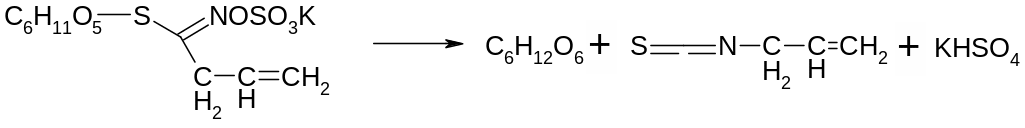 Гликозид синигрин – содержится в семенах горчицы, корнях хрена (3-3,5%). Под действием ферментов гидролизуется: