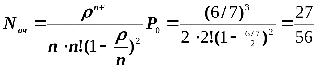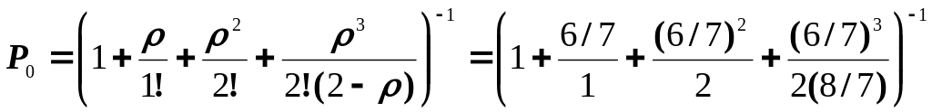 Считая, что время обслуживания у второго продавца такое же, как и у первого, полагаем r = 6/7. Условие применимости уравнений Эрланга r < 1 выполняется, поэтому для установившегося режима работы двухканальной системы (n = 2) находим: