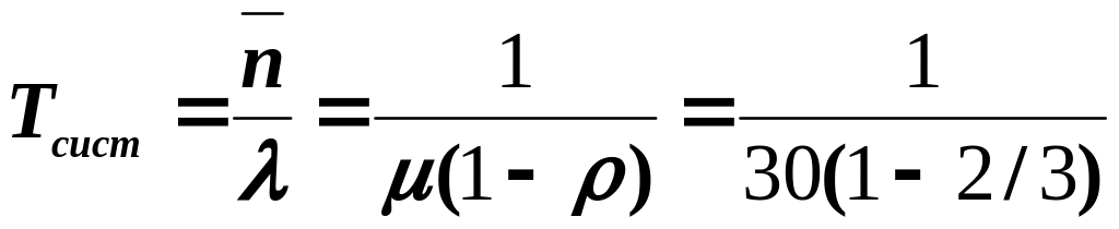Интенсивность потока поступающих заявок l = 30 (1/ч). Время нахождения одного покупателя в магазине (системе) Тсист = 12 мин. = 0,2 ч.