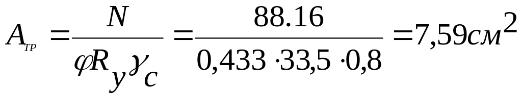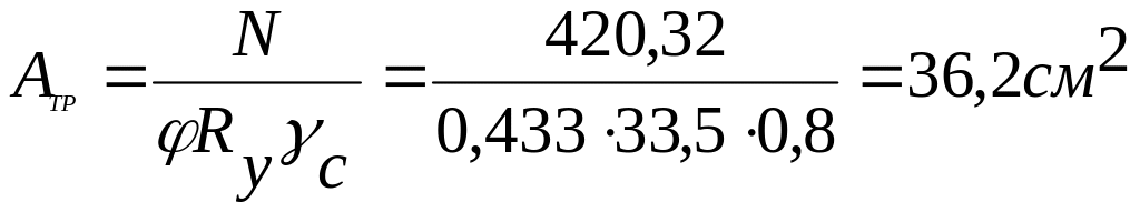 навантаження N4-6 = -898.34 kH.Задамося гнучкістю – = 90, розрахунковий опір сталі за межею текучості Ry=315 МПа, по табл.7.2(додаток А), коефіцієнт поздовжнього вигину = 0, 527 .