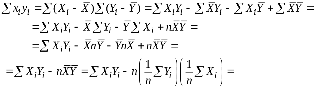 Дведемо, що можна отримати більш прості вирази для коефіцієнтів регресії. Для цього введемо нові величини – відхилення від середніх за вибіркою значень