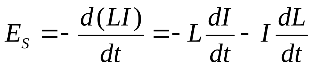 В проводящем контуре возникает эдс и в случае, когда изменение магнитного потока происходит вследствие изменения тока в самом контуре. Эдс, возникающая при этом, называется эдс самоиндукции ЕS и явление наведения индукционного тока называется явлением самоиндукции. При подстановке (1) в (3) получаем величину эдс самоиндукции