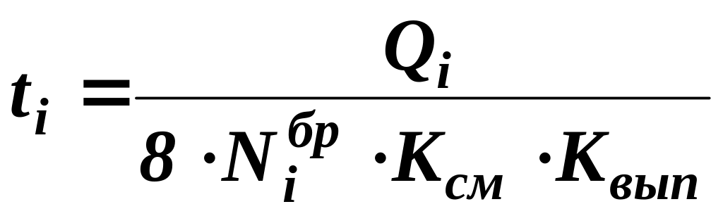 Ксм – коэффициент сменности. Для ручных операций 1-2 смены в сутки, для механизированных 2 смены в сутки;