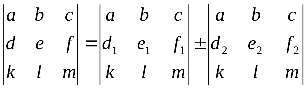 Свойство 9. Если для элементов какой- либо строки или столбца матрицы верно соотношение: d = d1 d2 , e = e1 e2 , f = f1 f2 , то верно: