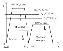 AC3 = 780 ± 10°С Сталь подвергают полной закалке при этом ее нагревают до образования однородной мелкозернистой аустенитной структуры.