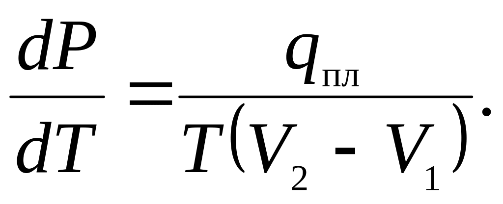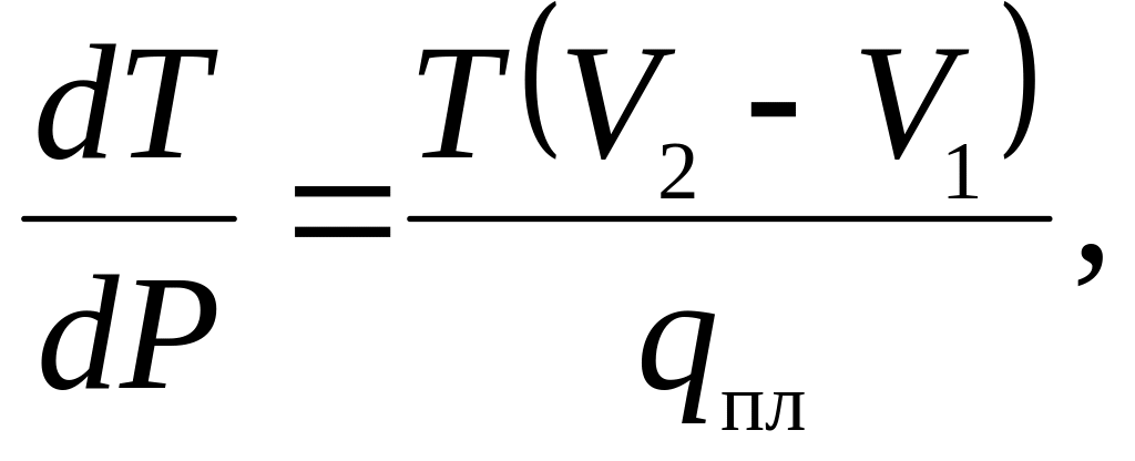 Изменение температуры dT плавления кристалла связано с изменением внешнего давления dP уравнением Клапейрона Клаузиуса: