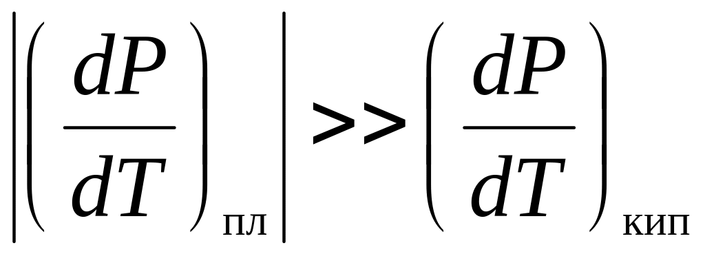 Линия 13 относится к кристаллам, для которых , а линия 14 для кристаллов с . Слева от этих линий вещество находится при температурах, которые меньше температуры плавления, т. е. в кристаллическом состоянии; справа от этих линий вещество находится при более высокой температуре, т. е. в жидком состоянии. Вдоль самих линий 13 или 14, в каждой их точке, кристаллическая и жидкая фазы существуют одновременно. Точка 1 соответствует самому низкому давлению, при котором еще возможно превращение вещества из кристаллического состояния в жидкое и обратно, т. е. равновесное состояние между кристаллической и жидкой фазами: при меньших давлениях жидкое состояние не существует.