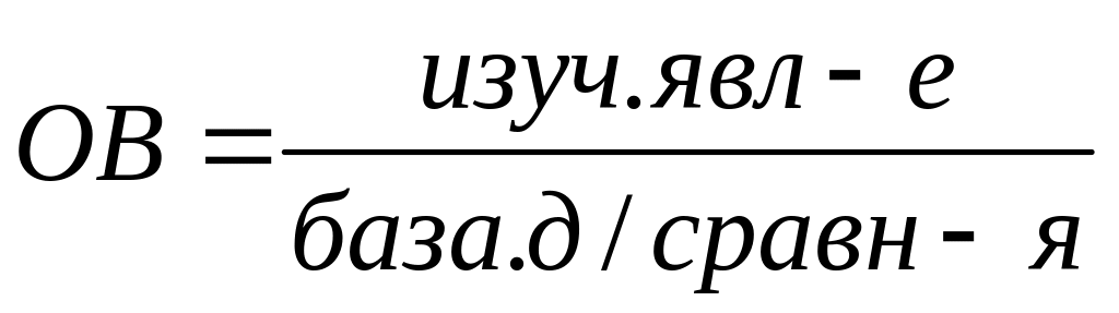 Относит вел-на – соотнош разноименных пок-лей. О в м.б. выражены: 1. коэф (за базу – 1 в долях целой); 2. в процентах ( за базу -100); 3. прочие (%, за базу – 1 000).