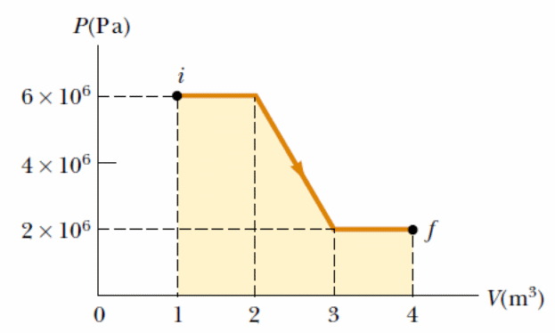 etermine the work done on a fluid that expands from i to f as indicated in Figure.