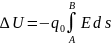When a positive test charge q0 is moved between points A and B in an electric field E, the change in the potential energy of the charge–field system is: