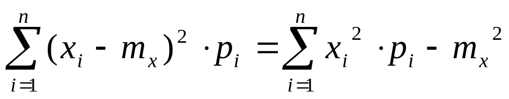 4. Дисперсия СВ равна разности мат.ожидания квадрата СВ и квадрата ее мат.ожидания: D[X]= М[X ]-(М[X])