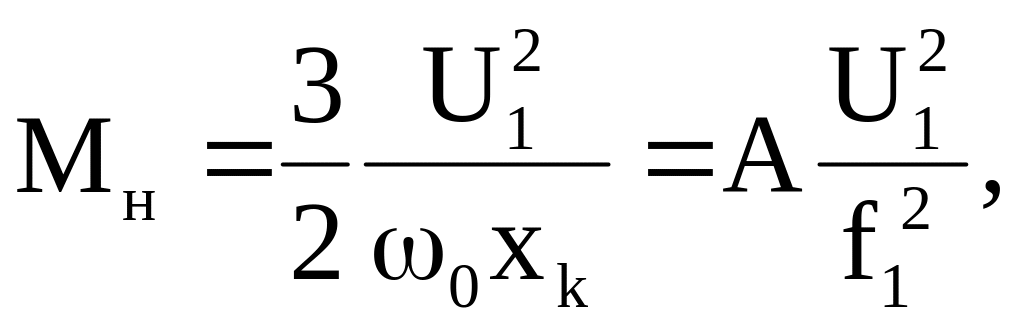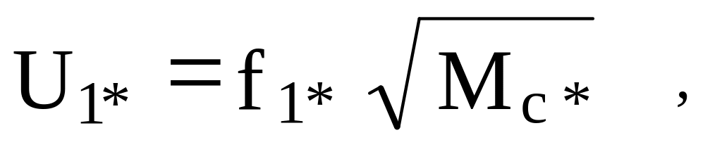 Приймаючи один з режимів роботи двигуна за номінальний, тобто вважаючи, наприклад, що при f1k = f1н до затисків обмотки статора прикладена номінальна на-пруга U1н і при цьому двигун розвиває номінальної момент, і позначаючи f1j = fj , можна основний закон зміни напруги при частотному регулюванні записати у виді